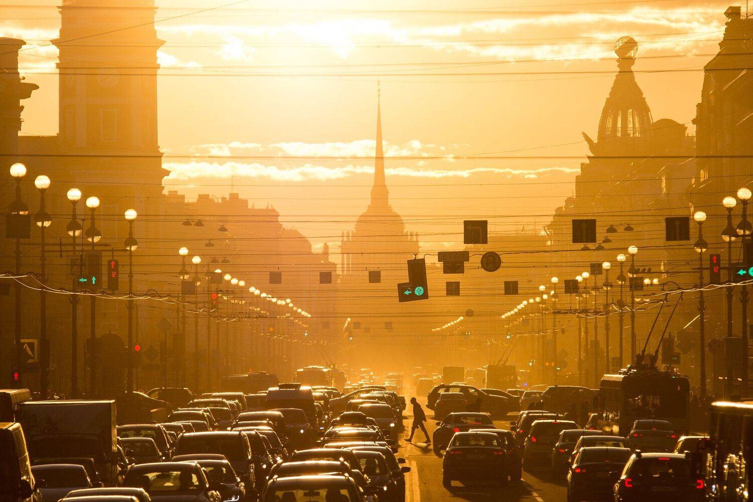 Залитый солнцем Невский проспект.