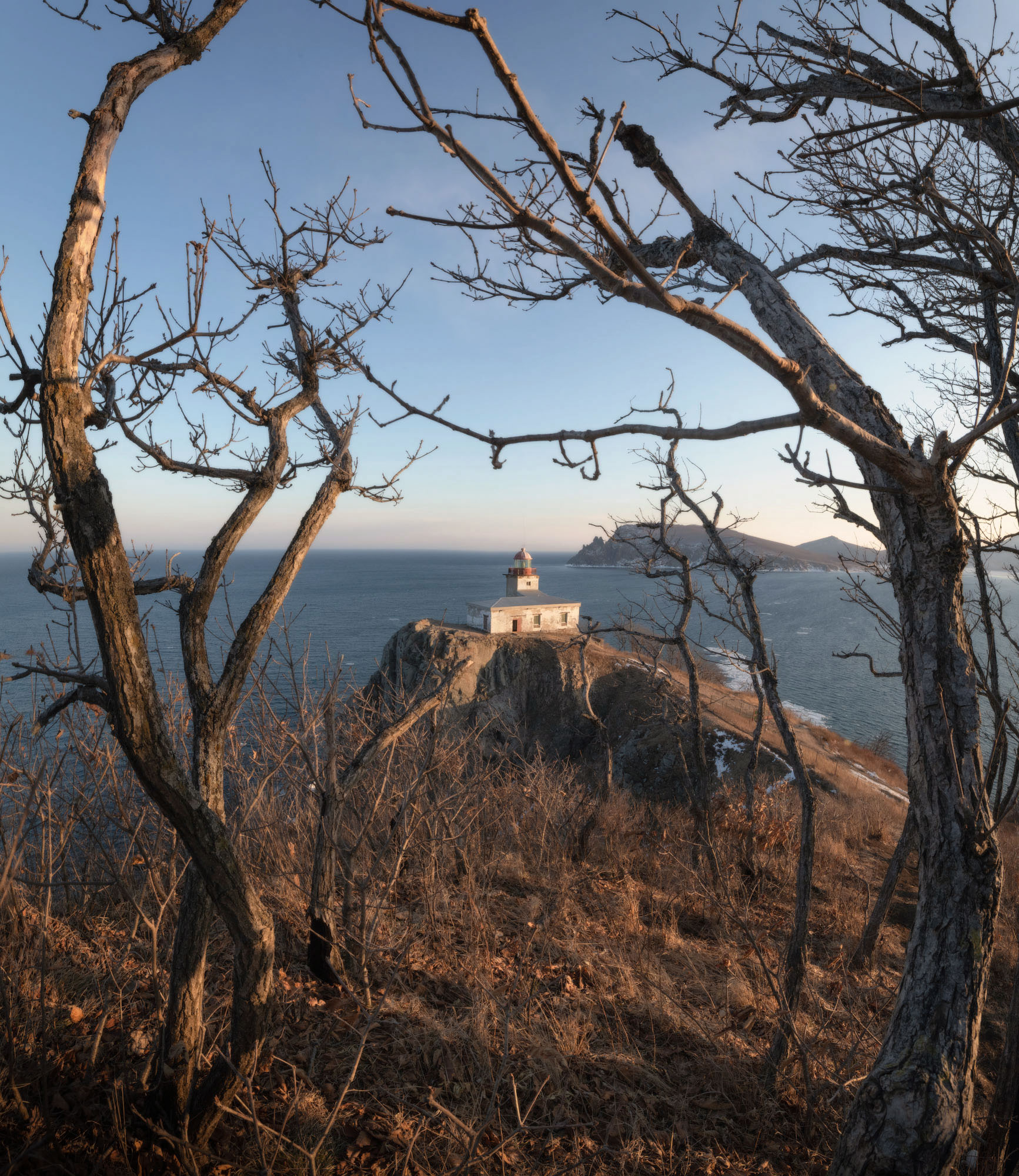 Ранний выезд на утреннюю фотосъемку на маяк Токаревская Кошка - одного из основных символов Владивостока. Море здесь уже полностью замерзшее, встречаются интересные наледи наплески. После фотосъемки возвращаемся в отель и завтракаем. Затем, не теряя время, выселяемся из отеля, грузим все вещи в автомобили и отправляемся на самый юг края, в Хасанский район, на полуостров Гамова (маршрут 200 км, дорога займет 3-4 часа). Обед по дороге. По прибытию размещаемся на туристической базе в пос. Витязь, переодеваемся и сразу выезжаем на вечернюю фотосъемку. Закат снимаем в живописнейшей бухте Орлинка, которая расположена на территории Дальневосточного Морского заповедника. Идти от стоянки автомобилей до бухты около 30 минут, а по расстоянию чуть более километра (некрутой спуск вниз по хорошей тропе). После съемок возвращаемся к автомобилям (некрутой подъем займет 45-60 минут). Затем приезжаем на базу и ужинаем. К сожалению, в поселке Витязь в зимний период не работает ни одно кафе. Поэтому, о питании здесь нужно позаботиться самостоятельно. Организатор тура обеспечит горячими напитками, холодными закусками и сладостями. Остальное можно купить в магазине самостоятельно (электрочайники есть в каждом номере).