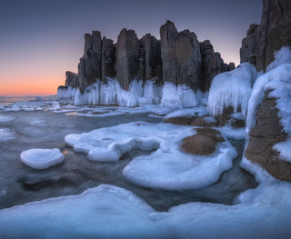 Ранний выезд на утреннюю фотосъемку к еще одному интереснейшему месту на полуострове Гамова - острову Томящегося сердца (откуда взялось такое романтичное название, вам расскажет фотогид). Здесь, в окружении корейских сосен, замечательный вид на сам остров, с удивительным сочетанием бирюзового моря и ледяных наплесков на камнях! Спуск к самому острову очень крут, поэтому здесь протянули страховочную веревку. Спуститься и подняться здесь не составит большого труда, однако, можно остаться наверху и сделать замечательные снимки с верхних ракурсов! После съемок возвращаемся на базу и завтракаем. У вас будет немного времени, чтобы отдохнуть перед мастер-классом, который будет проведен в зале с большим экраном. После мастер-класса грузим вещи в автомобили, сдаем номера и переезжаем в п. Славянка, где останавливаемся на обед в кафе (дорога займет около 1 часа). После этого выезжаем к мысу Брюса, где проводим вечернюю фотосъемку. На мысе очень интересная структура камней, здесь удивительным образом сформировались каменные колонны правильной формы, а зимой на морском побережье у мыса образуются самые внушительные ледяные торосы и наплески. После фотосъемок снова заезжаем в п. Славянка, где останавливаемся в кафе на ужин. Далее переезжаем в г. Артем (дорога займет около 2 часов) и размещаемся в отеле.