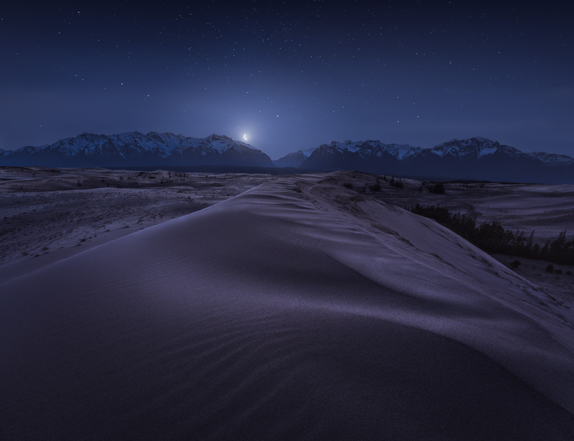 Встречаемся в Новой Чаре. Выезжаем к началу дороги, ведущей к Чарским пескам и перегружаемся в болотоходы. Дорога, часть которой будет проходить по пескам, а часть по болотам, займет около 1 часа. По приезду в самый центр пустыни повар займется обедом, а мы установим лагерь и немного отдохнем. Отсюда будем ходить на близлежащие барханы и снимать в режимное время. Ближе к вечеру, выйдем закатную съемку. После съемки ужин и, если позволит погода и будет желание, ночная съемка.