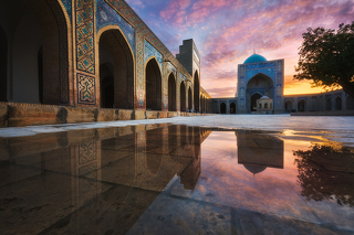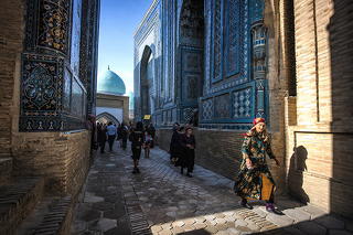 Сегодня на рассвете мы поснимаем комплекс медресе на площади Регистан. Более того, мы поднимемся на один из минаретов, чтобы запечатлеть красоту города в утренних лучах. После знакомства с Регистаном мы отправимся в мавзолейный комплекс Шахи-Зинда. Рассветное солнце встало достаточно, чтобы прорезать узкие улочки этого комплекса узкими лучами света. Именно в первой половине дня комплекс смотрится особенно интересно. На обратном пути мы обязательно посетим мечеть Хазрет-Хызыр, которая с недавнего времени стала еще и усыпальницей первого президента Узбекистана Ислама Каримова. Странное, но от того еще более любопытное строение.