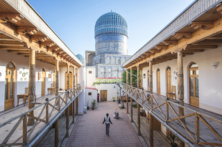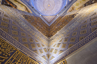 До обеда мы обязательно посетим мавзолей Гур-Эмир, где покоится Амир Тимур. Мавзолей впечатляет не только своим внешним видом, но и внутренним убранством - изящная резьба и роспись покрывают мавзолей от самых стен до потолка!