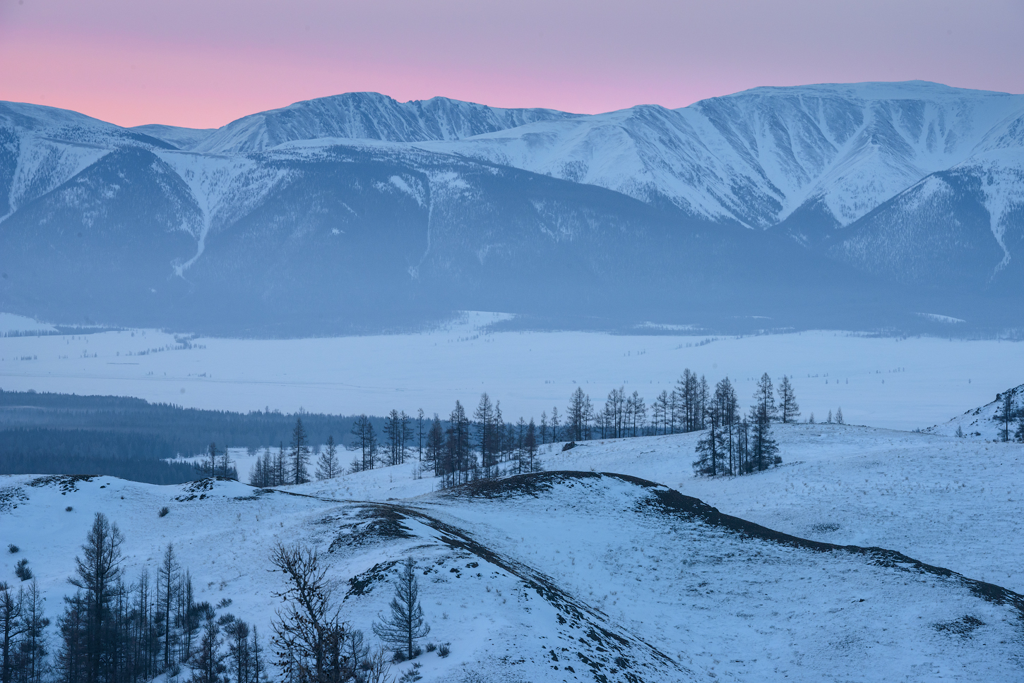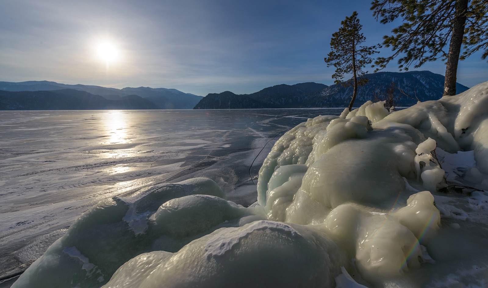 Основные зимние достопримечательности региона: замерзшие, вскрывающиеся и парящие реки, лёд в реках самым причудливым образом наломан, зимой особенный цвет воды, а именно, насыщенная бирюза, наледи на реках совершенно особый жанр в Сибири, незамерзающие озёра с бирюзовой водой на Катуни, пруд с тысячами лебедей, плавающих в парящей в морозы воды, настоящие зубры, покрытые изморозью, водопады превратившиеся в ледопады, ледяные трещины, торосы и наплески на Телецком озере, который в период замерзания превращается в маленький Байкал, острые пики и вечные ледники Алтайских гор, также всё это можно снимать ночью!