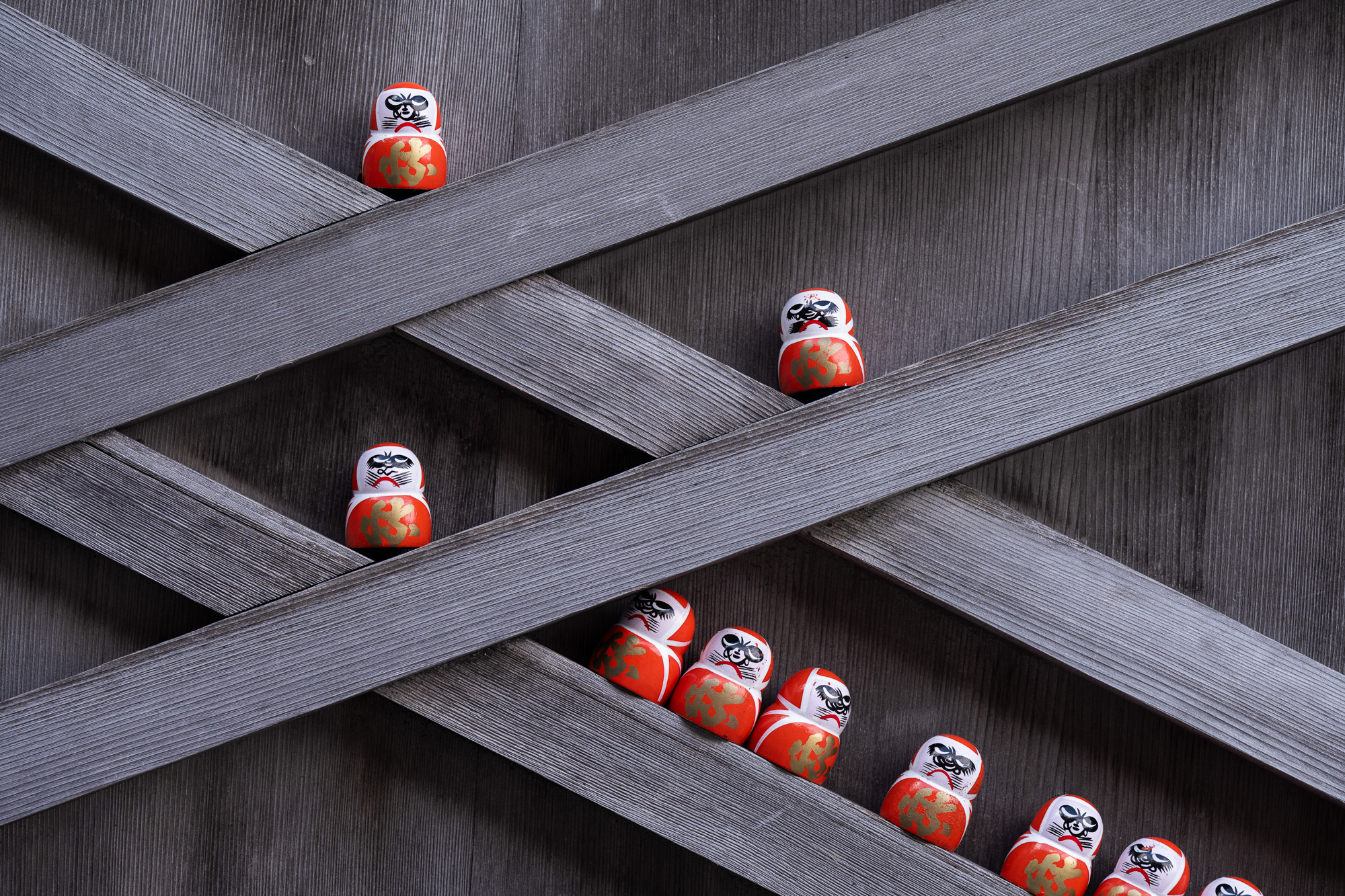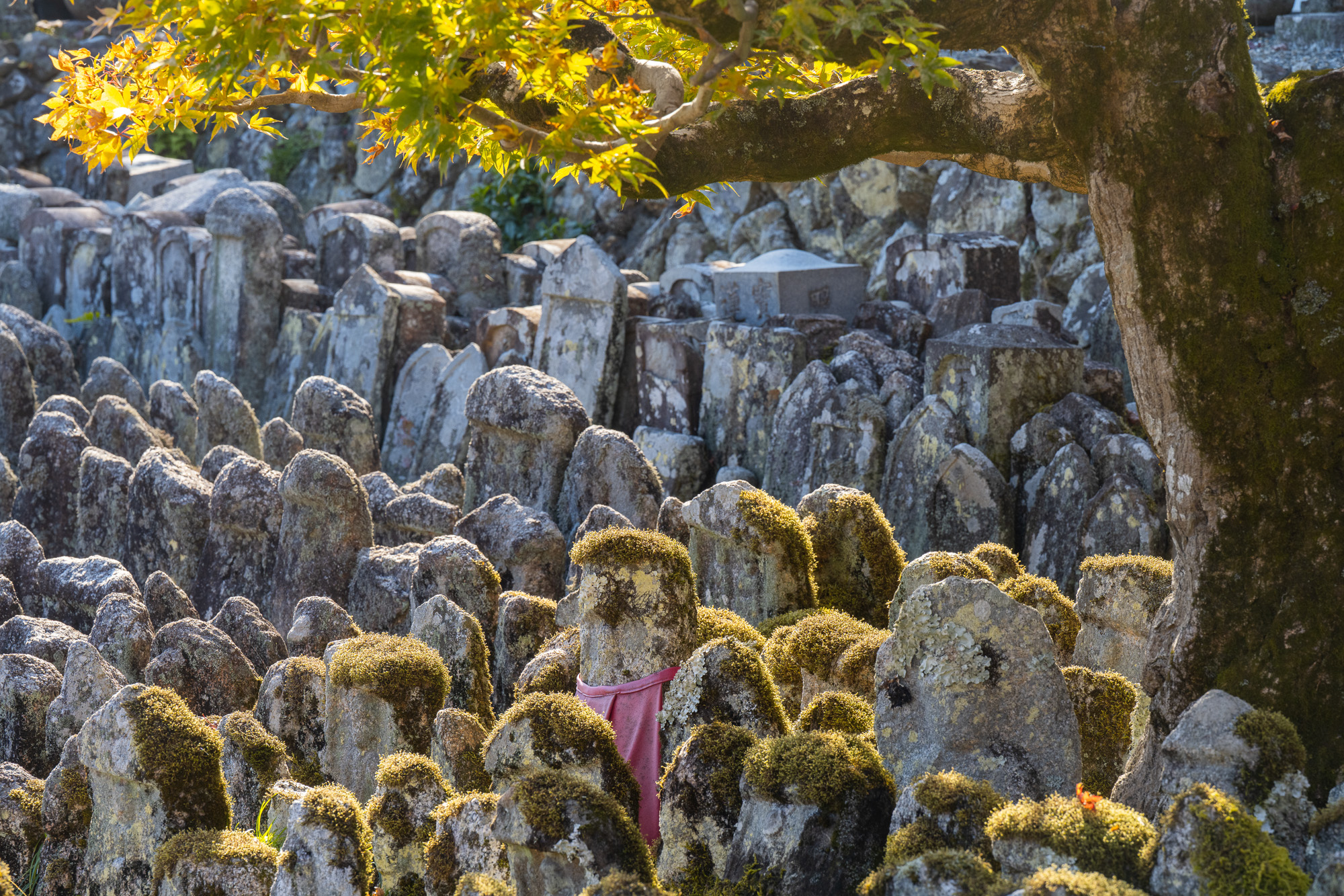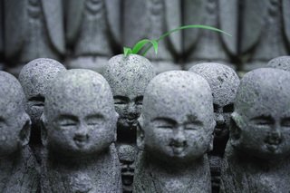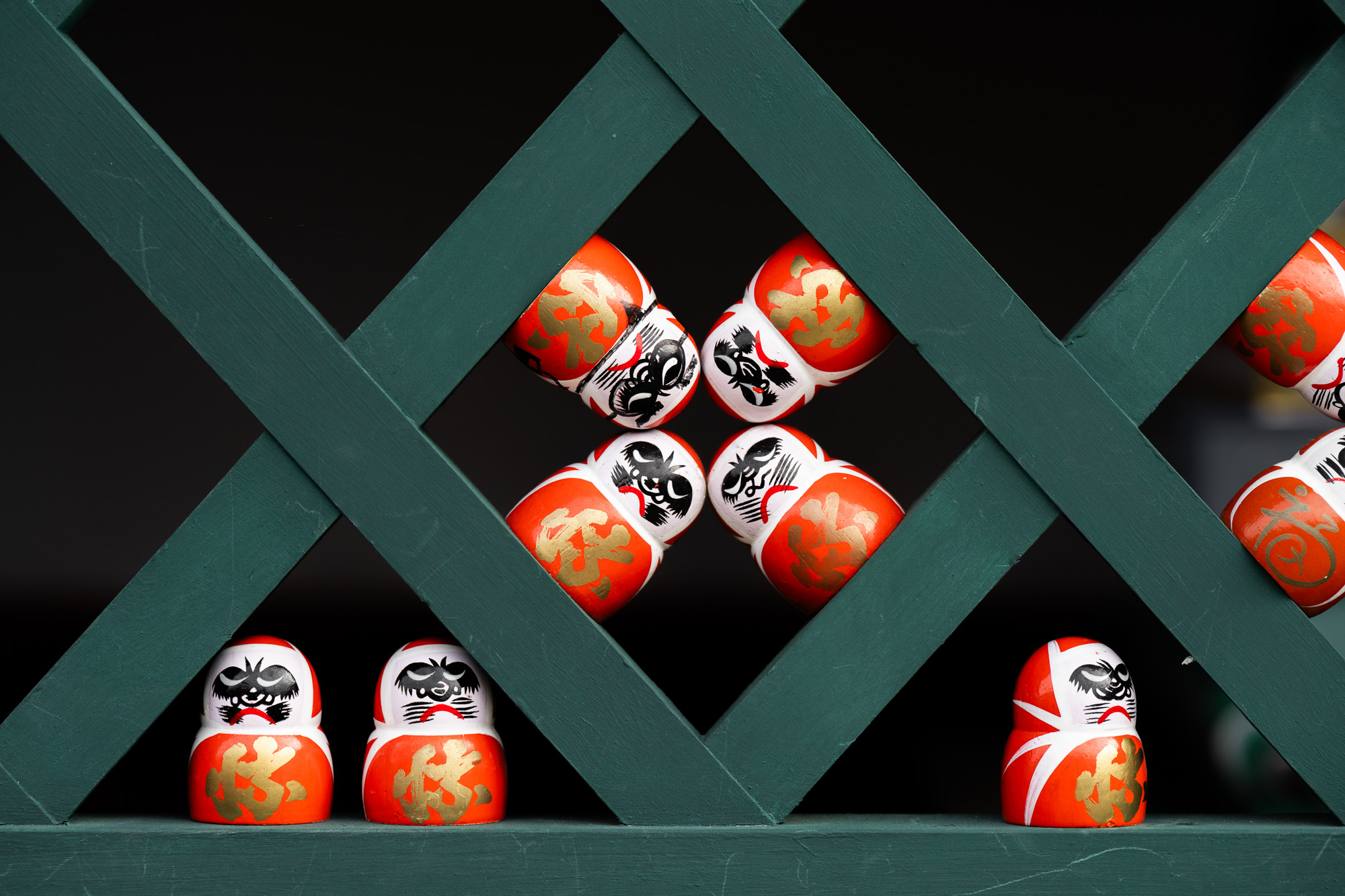 Даруму часто изображают в виде круглой куклы-неваляшки с выпученными глазами. Так вот, они в этом храме повсюду! То есть вы можете не просто поснимать красивые парковые пейзажи на территории храма (кстати, очень немаленькой), но и необычные сюжеты с кучей маленьких дарум, которые стоят в кустах, на камнях, каменных фонарях - да везде!