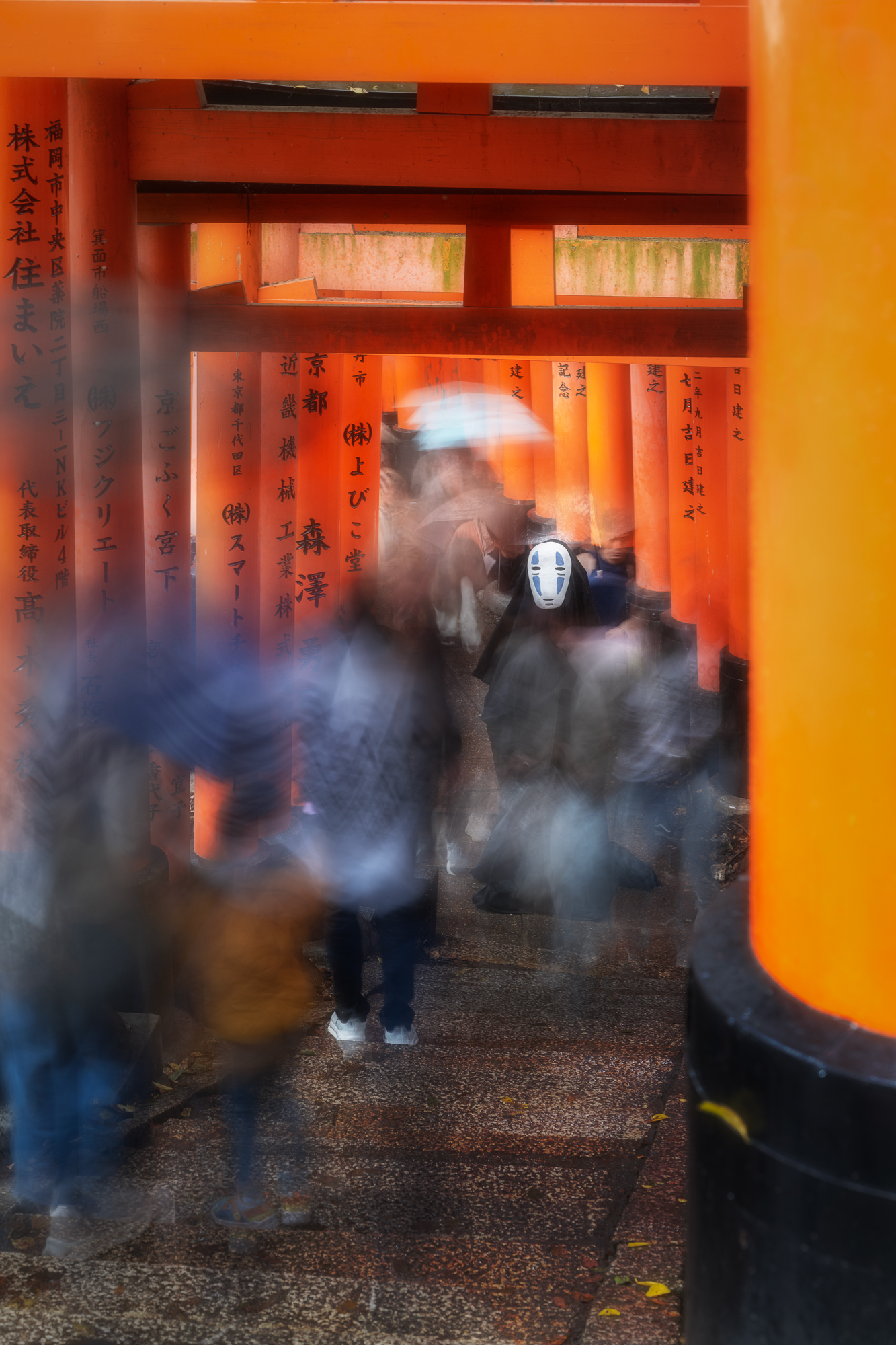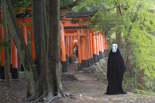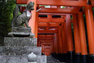 Сегодня утром выберемся в одну из самых известных достопримечательностей Японии - синтоистский храм Фусими-инари - знаменитый храм с сотнями ворот-тории. Вся тропа идет несколько километров, и утренние туристы, даже если они будут, не заберутся сильно далеко и высоко. Так что свои спокойные кадры мы получим.