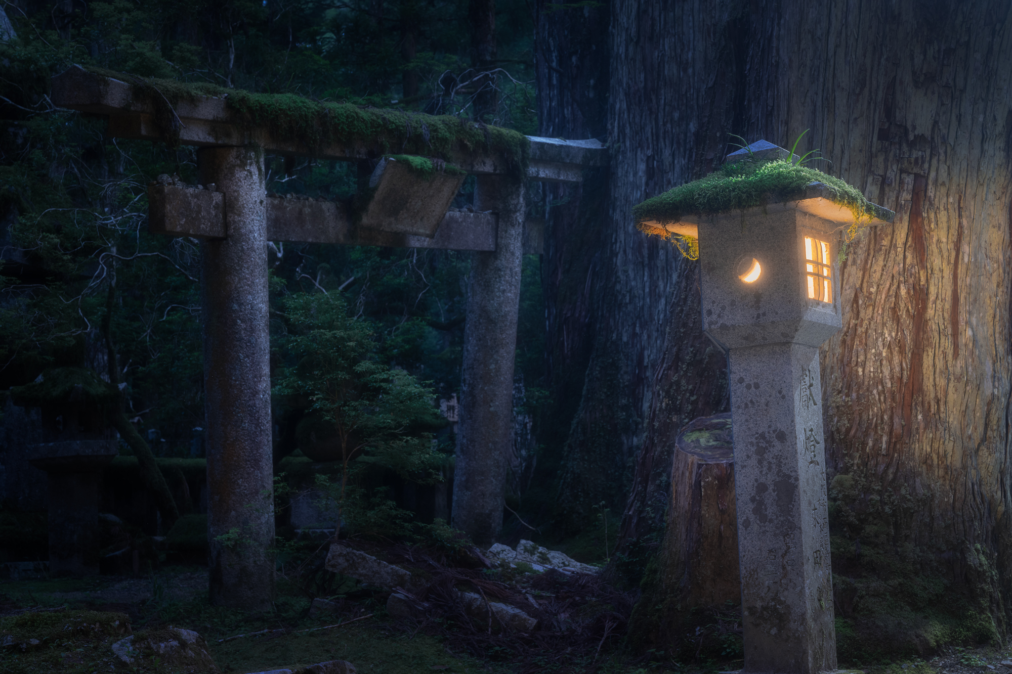 Заселившись, мы отправимся на древнее кладбище Окуно-ин недалеко от монастыря. Здесь древние, поросшие мхом памятники соседствуют с огромными деревьями, а в сумерках по сторонам тропинки зажигаются каменные фонари. Ощущение инопланетное…
