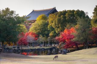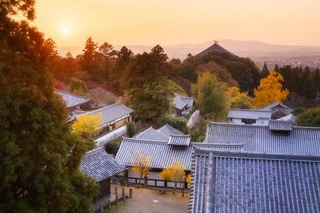 В парке Нара очень много красивых мест, но я предпочитаю снимать закат с галереи храма Тодай-дзи. Хотя и сам храм смотрится очень эффектно. Так что снимать здесь на закате можно не только вид, но еще и интересные детали, за которые мы так любим Японию.