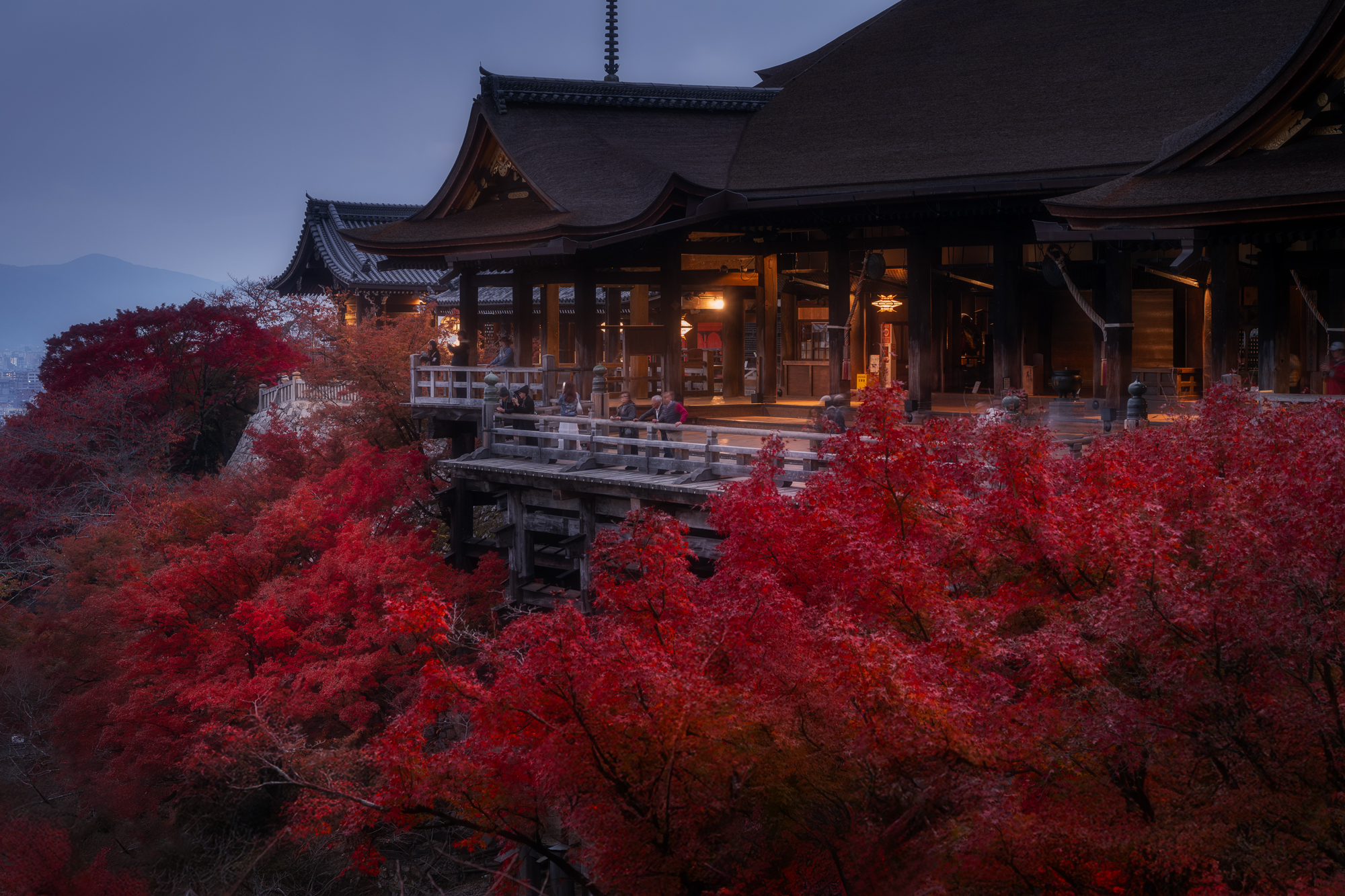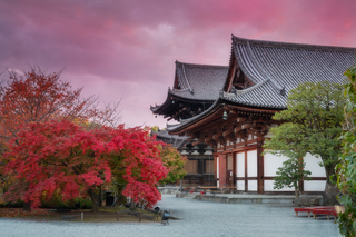 Встанем пораньше, и на рассвете отправимся к храму Киемидзу-дэра. Этот храм расположен на горе, у подножия которой растут кленовые деревья - естественно, осенью вид с галереи становится просто сказочным! Уникальность храма еще и в том, что сюда можно попасть до рассвета!