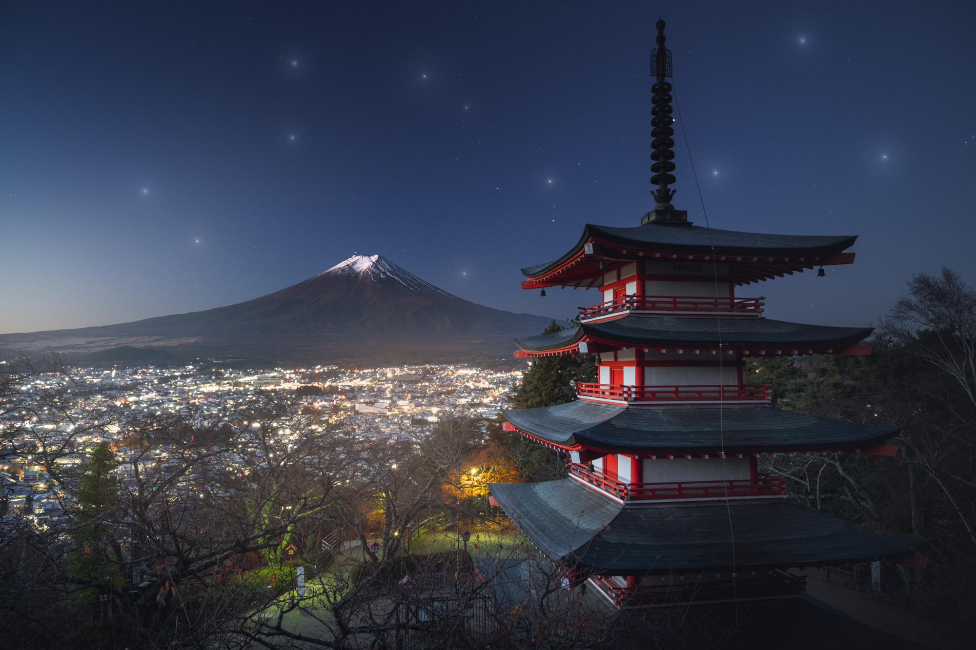 В этот день нас ждет ранний выезд на рассветные съемки. Сегодня мы отправимся к знаменитой пагоде Тюреито. Со смотровой за этой пагодой открывается впечатляющий вид на гору Фудзи и городки у ее подножия.