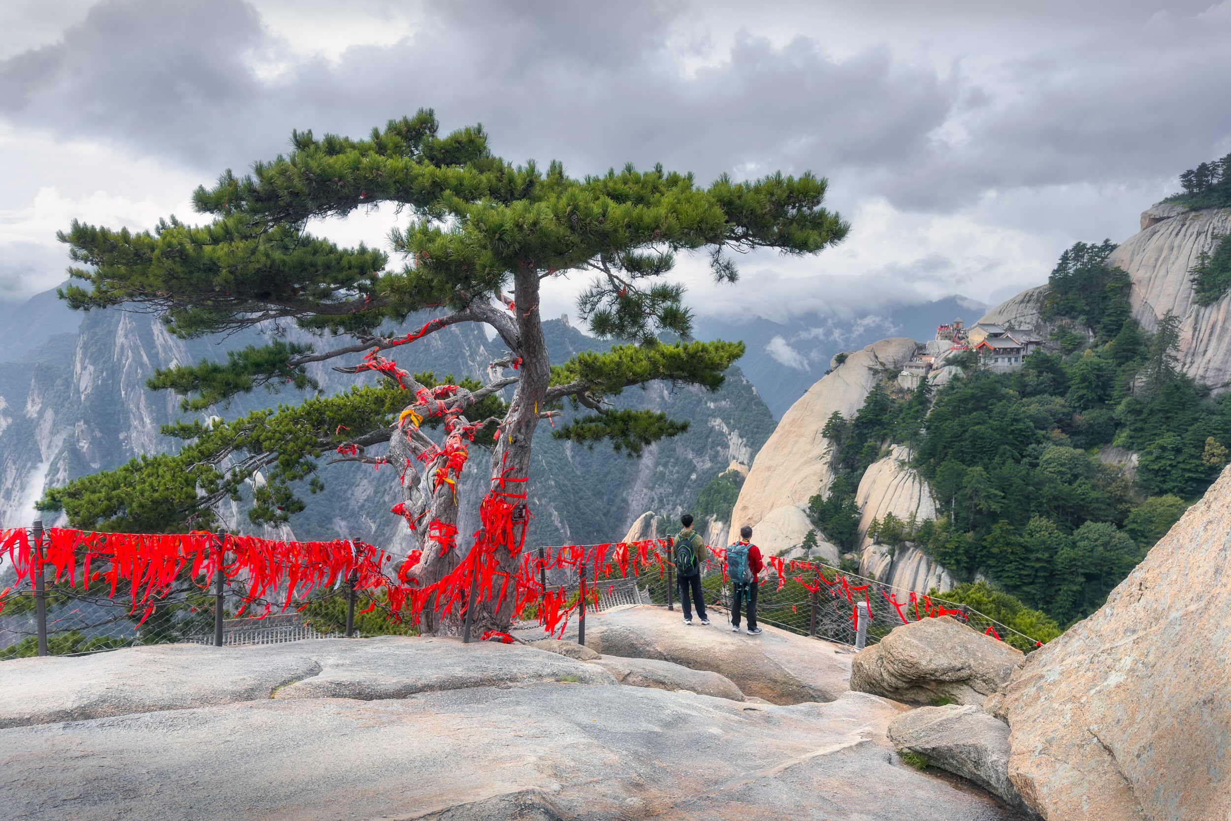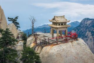 Подъем на канатной дороге к одному из пиков горы Хуашань. Трекинг по горному хребту среди фантастических видов и пейзажей. Гора является одним из пяти самых священных месту у последователей даосизма. По пути вам будут встречаться расположенные в скалах храмы, павильоны, множество красных ленточек и объектов культа. Единственное что за всю эту красоту надо платить бесконечным количеством ступеней. Их много. Но если неспешно идти, то прогулка вполне доступна любому человеку в обычной физической форме. Спуск на канатной дороге вниз.
