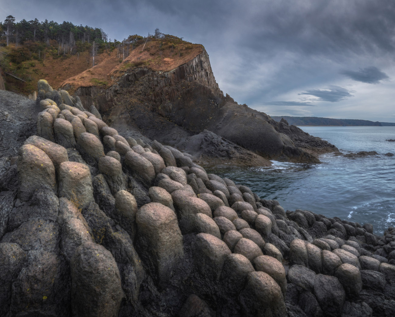 Утренняя съемка мыса Краба. Сбор лагеря. Переезд в п. Малокурильское. Морской переход на теплоходе Игорь Фархутдинов по маршруту о. Шикотан – о. Кунашир. Заселение в гостиницу Южно-Курильска.