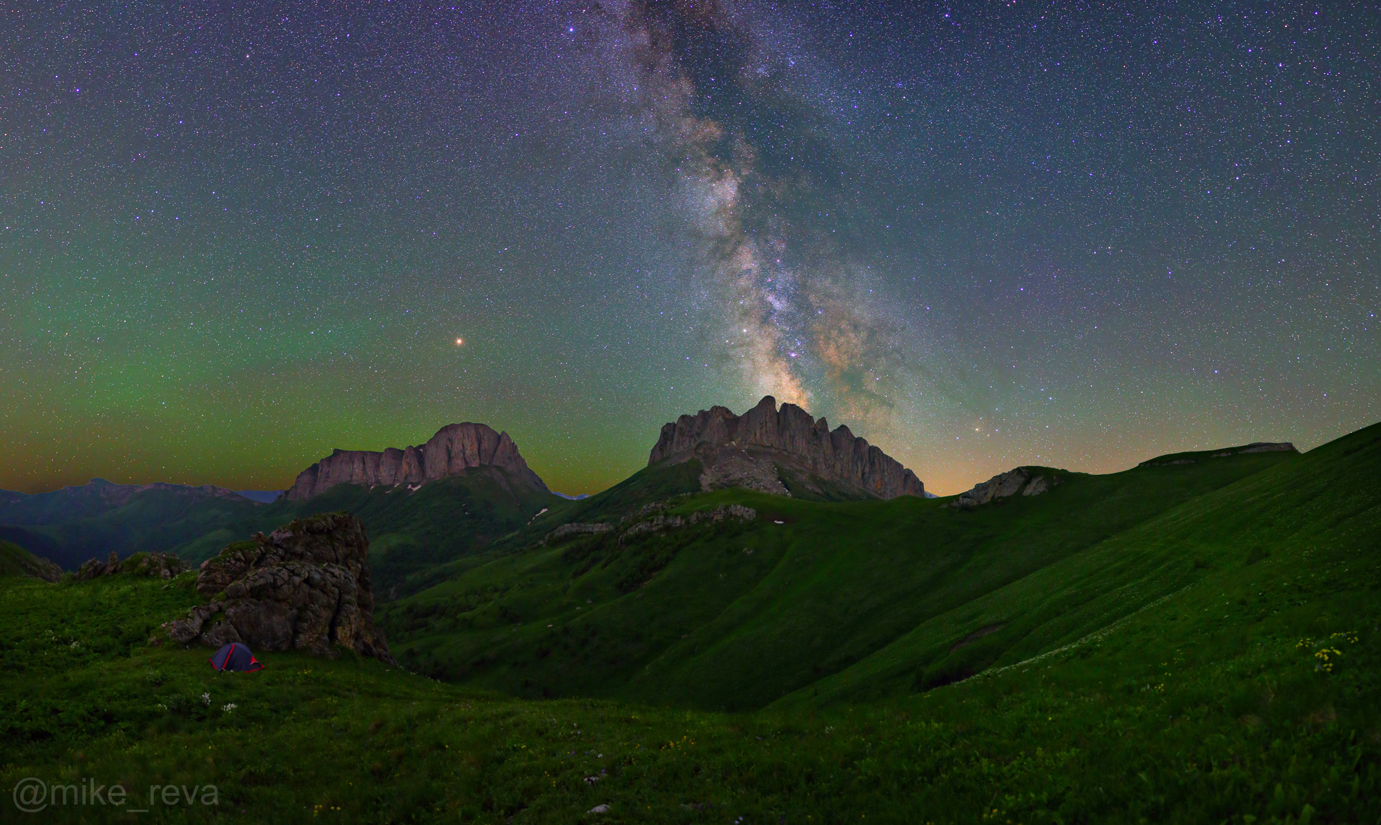 Середина июня очень интересное для фотографа время на Тхачах. Дни уже достаточно теплые и солнечные, иногда проносятся грозы, а по вечерам часто стелются эффектные туманы. Млечный Путь отлично расположен для съемок на протяжении всей ночи, a во второй ее половине сразу три планеты Марс, Юпитер и Сатурн будут занимать фотогеничное положение, выстроившись в линию.