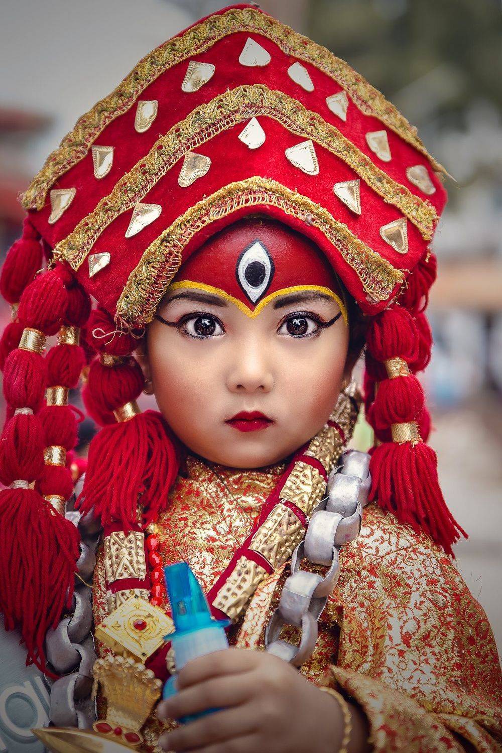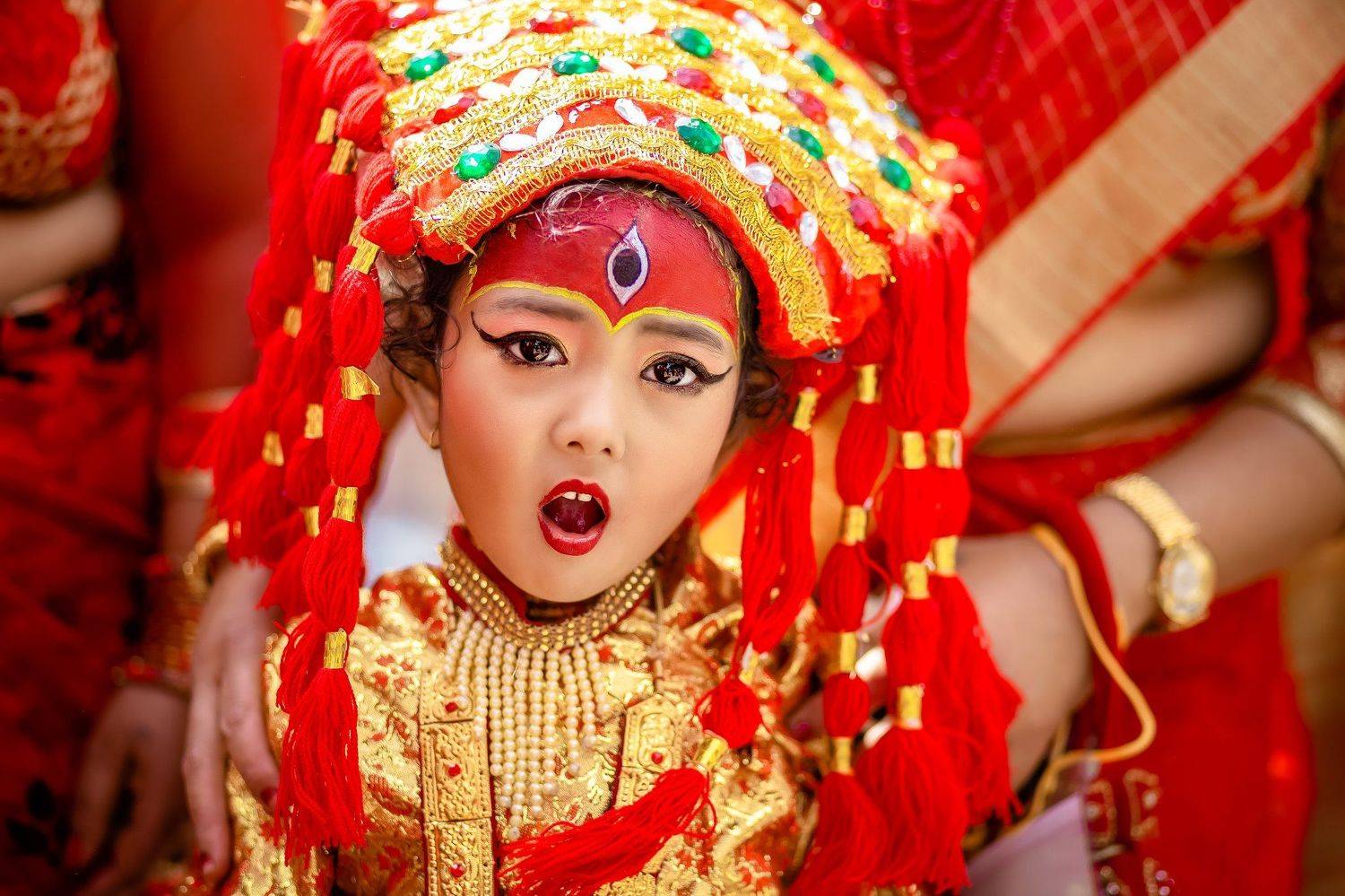 Beautiful Child in Attire of Living Goddess Kumari.