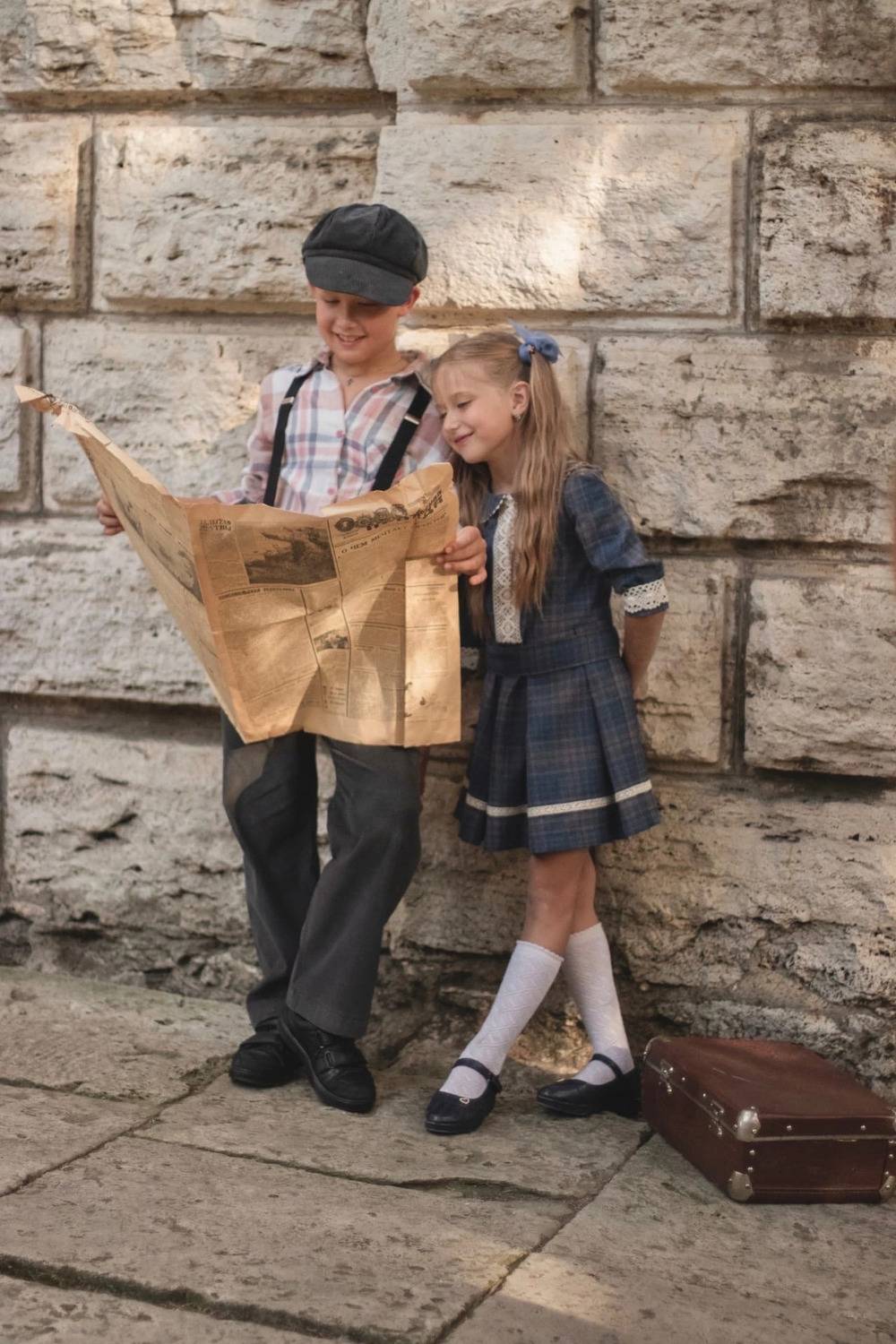 Брат и сестра читают газету.