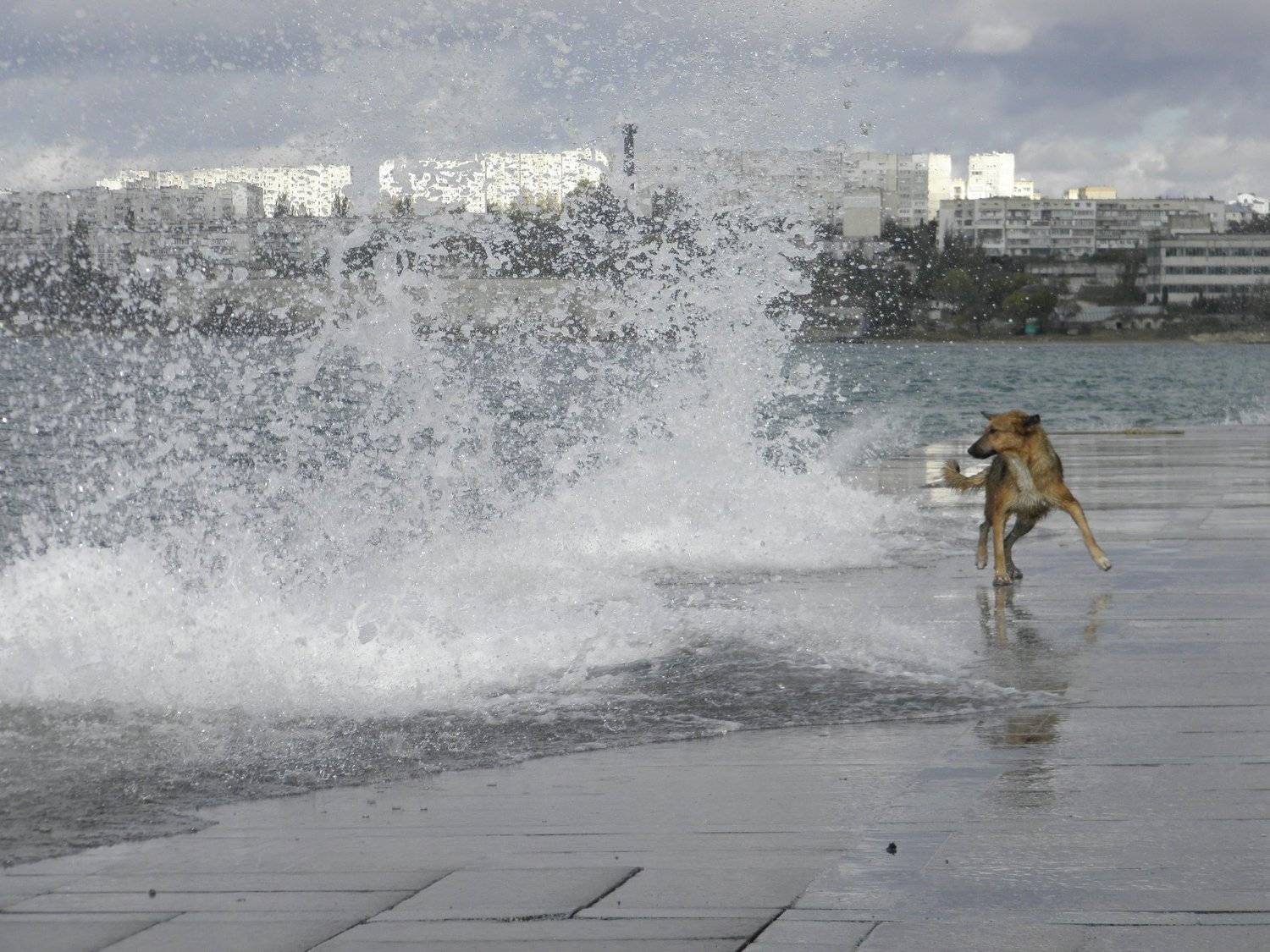 Игры с прибоем на городской набережной