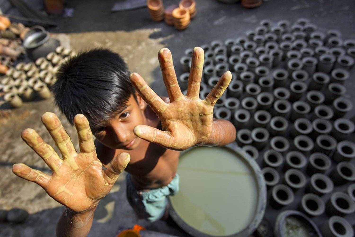 Portrait of a kid potter.