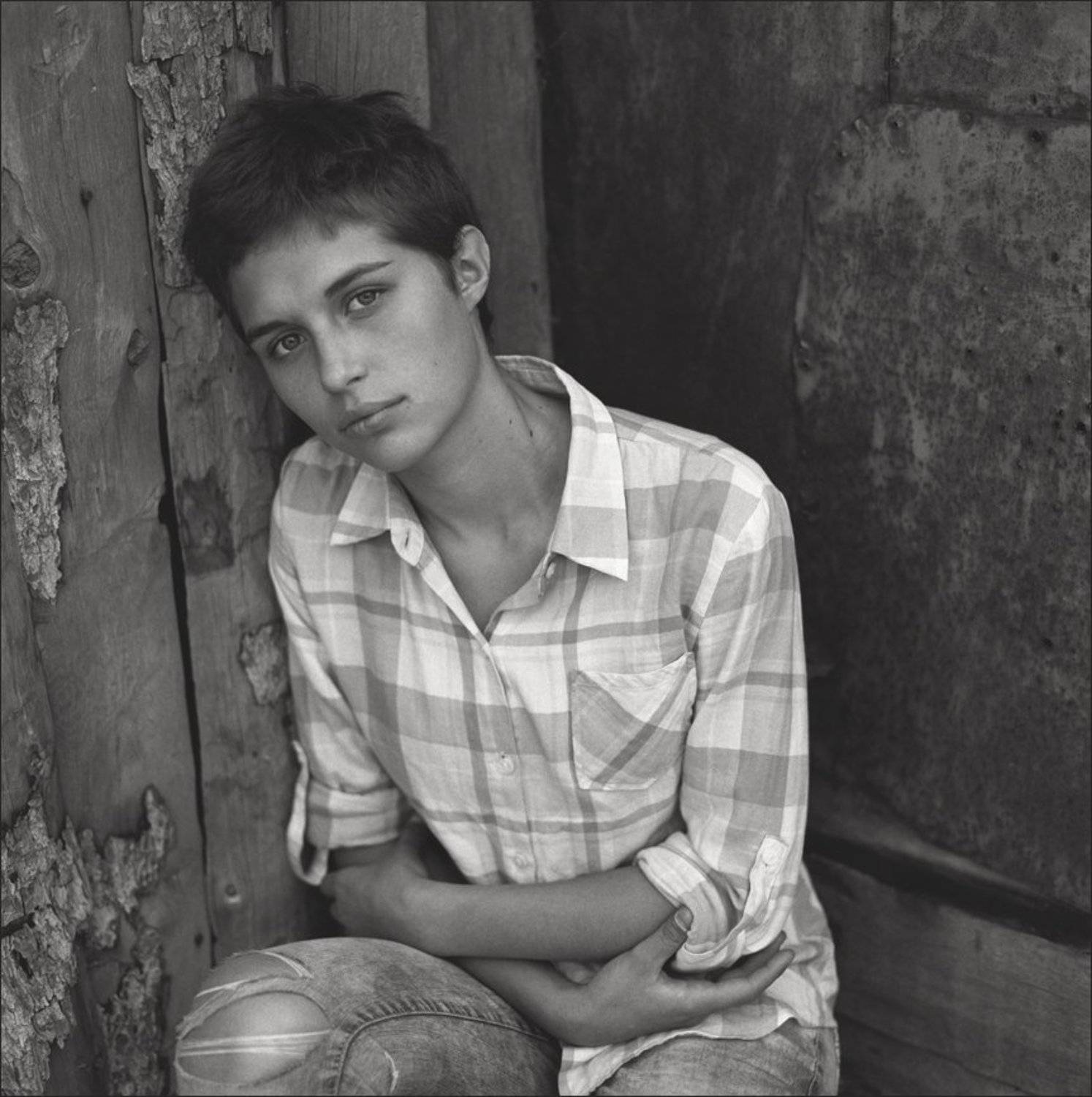 Девушка в рваных джинсах.