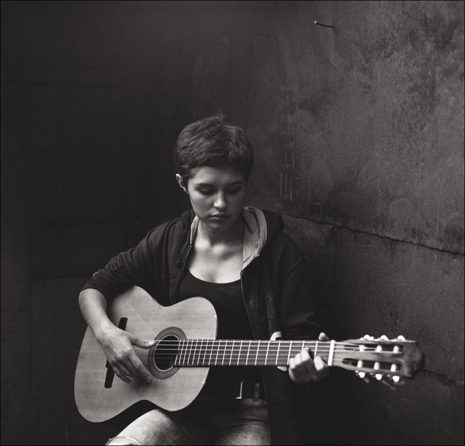 Девушка играет на гитаре.