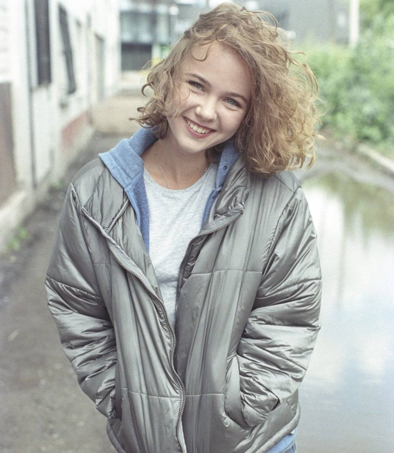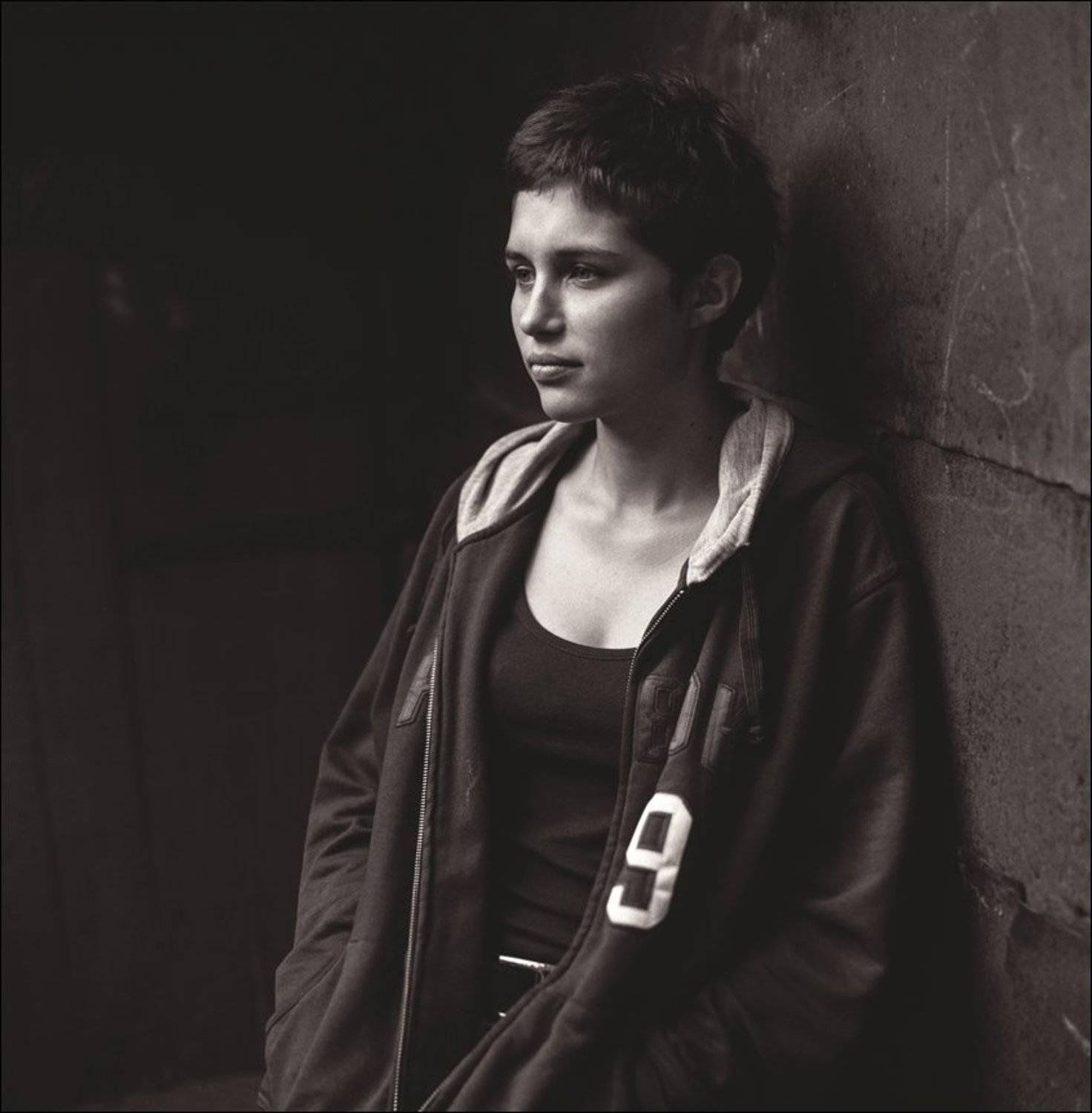 Девушка в спортивной кофте.