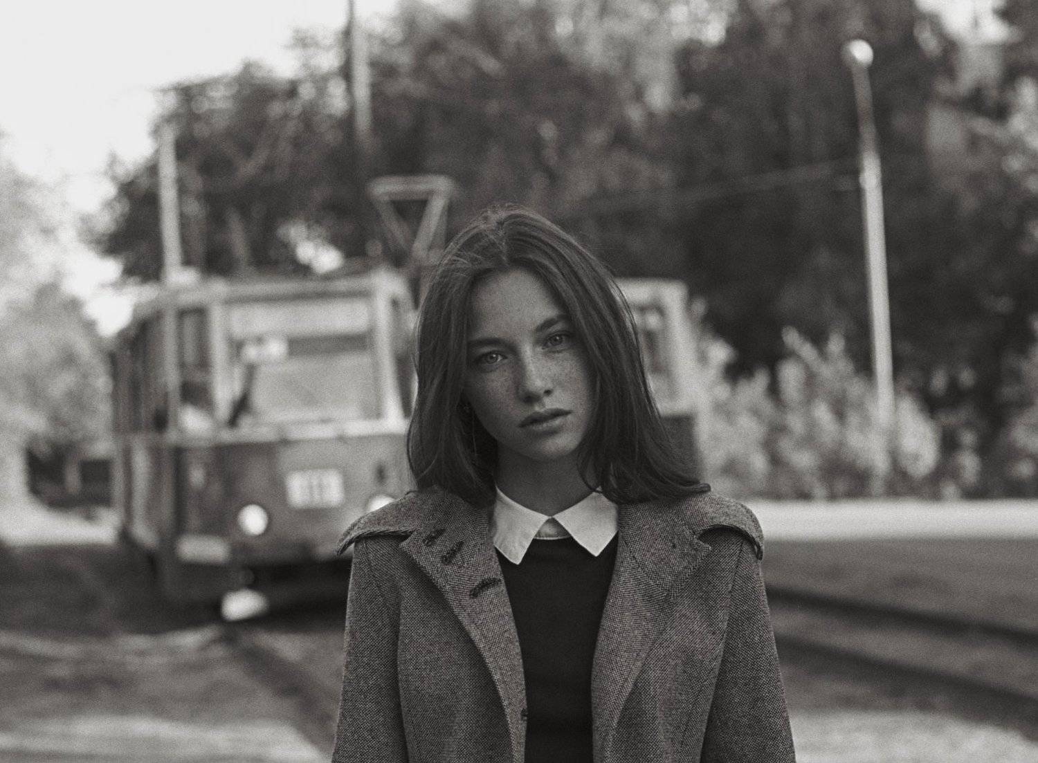 Девушка на трамвайной линии