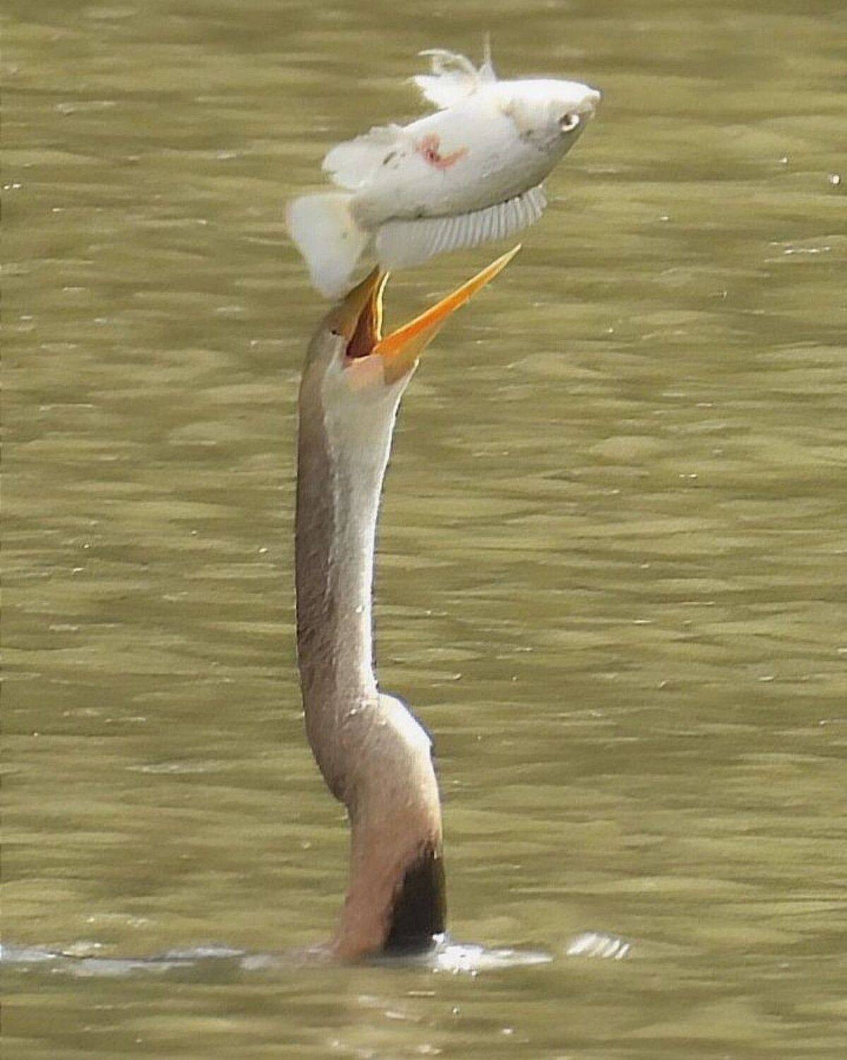 Oriental darter fishing
