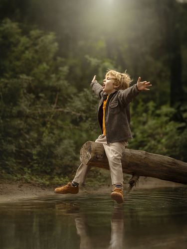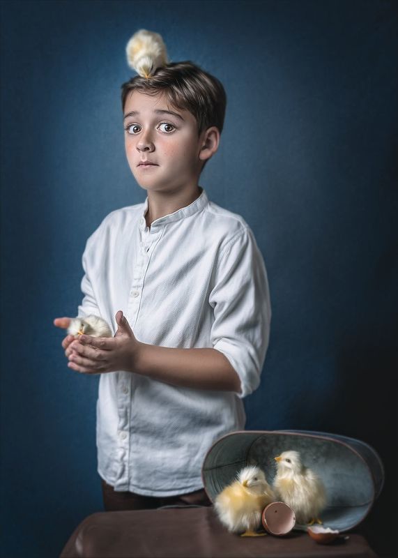 La fotografía evoca una serie de emociones y simbolismos. La actitud desafiante de la niña, combinada con su mirada intensa y el movimiento de su cabello, representa la fuerza, la libertad y la audacia inherentes a la infancia. Hay una sensación de independencia y resiliencia en su postura, que desafía las expectativas típicas de fragilidad asociadas con la niñez.