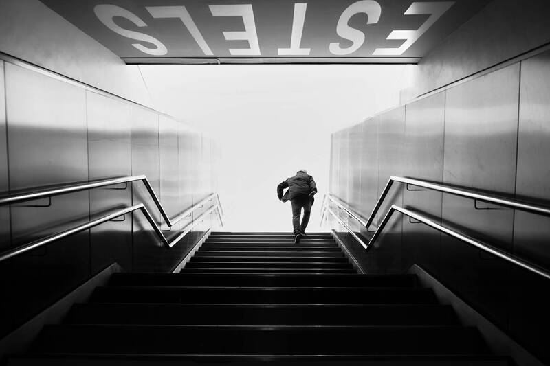 In this series, I tried to capture the simultaneity of people in the spotlight. I wanted to capture the fleeting moments and the quiet solitude of the city by aiming for the spotlight that appears for a short time on the platform of the local train line at Atocha Station. As I looked down at the scene through the lens, I imagined a drama of chance unfolding like in a Paul Auster novel.