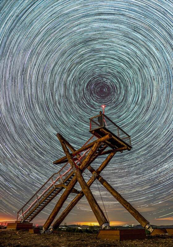 Circumpolar photography, 384 photographs stacked to get those lines of the stars around the North Star.