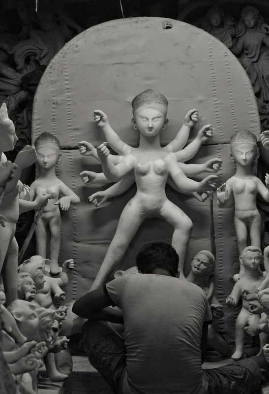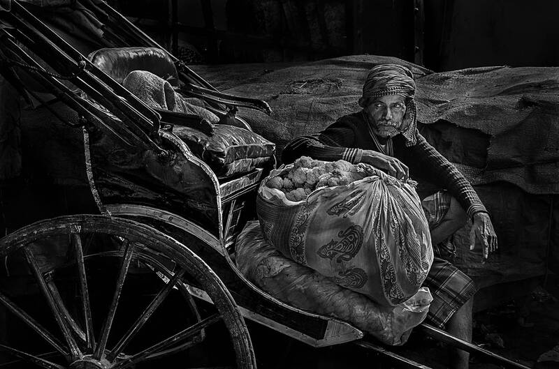 Shot during the last day of the iconic Durga Puja in Kolkata. Image depicts a rickshaw puller finishing his afternoon siesta in the middle of a bustling city. While the city is overwhelmed with emotions, the rickshaw puller is overwhelmed with sleep.
