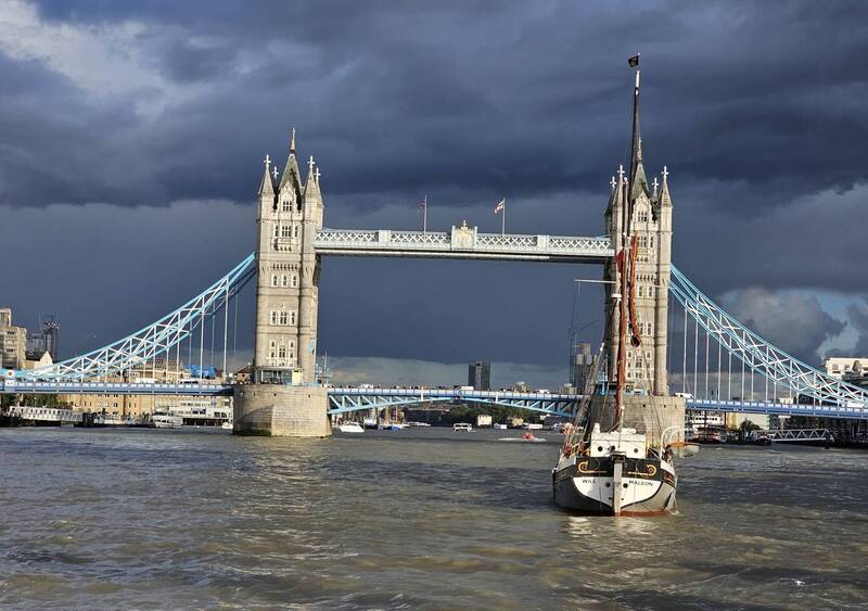 In the distance, partially obscured by the fog, are two figures on horseback. The riders are barely visible but add an intriguing element to the scene. They seem to be moving through the mist, which gives the impression of a dreamy or ethereal journey. Behind them, a tall, slender building looms, shrouded in the fog, adding to the sense of depth and scale in the photo.
