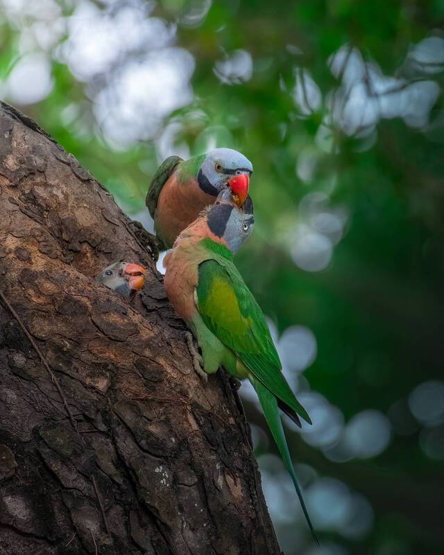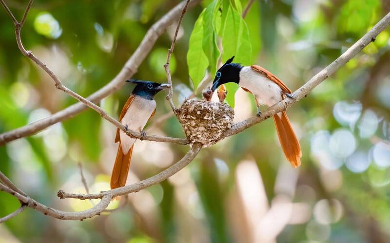 While wandering over a small jungle, I saw a nest. I wandered around. Then I watched a black-headed Oriole feeding a juvenile. Juvenile has yellowish streaks on forehead, whiteness around the eyes,dark streaking on the underpants. I saw this picture at the middle of Monsoon because they lay eggs at the beginning of monsoon.