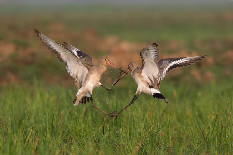 The Black-tailed Godwit's territorial fight is a testament to the bird's strength, courage, and determination. This spectacular display of nature is a reminder of the importance of territory and the lengths to which animals will go to defend their homes. As we witness this awe-inspiring battle, we are humbled by the beauty and complexity of the natural world. The photo is taken in Mangalajodi wetland, Orissa, India.