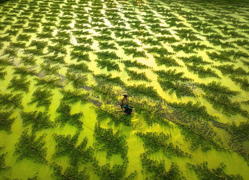 Grown on the water’s surface and clinging to vines, these vibrant plants form stunning, symmetrical diamond shapes as they thrive. It’s like nature’s artwork, perfectly aligned and mirrored on the water.
