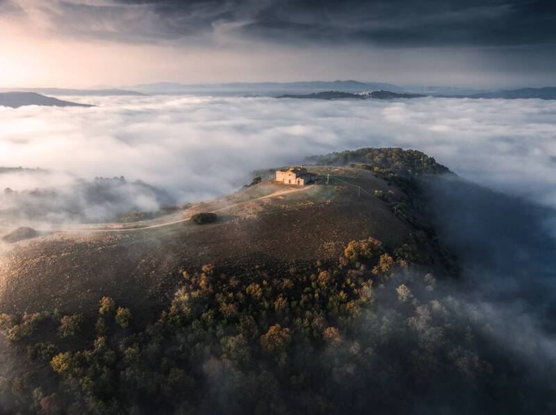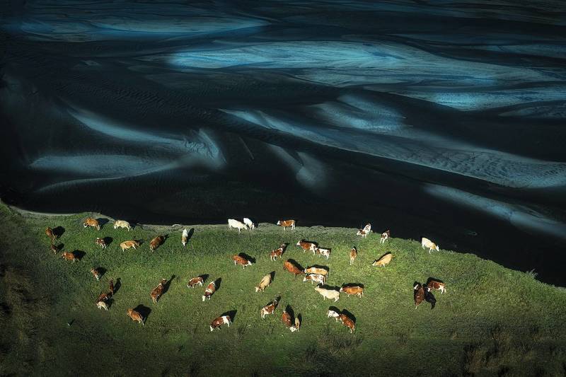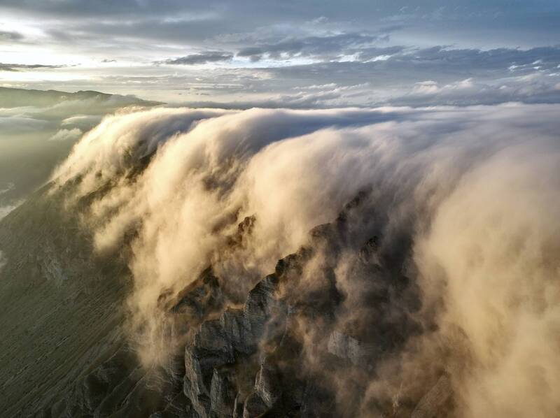 The image portrays the majestic Schwarzberg mountain near the Maighels river, a tributary of the Rhine. It was taken in August during a three day hiking trip with my friends. I was extremely tired, but says the view ‘was just too good to not fly the drone.’ The light pierced through the clouds illuminating the scene in a dreamy way, so I took a three picture panorama of the scene. The little house creates a dramatic sense of scale.