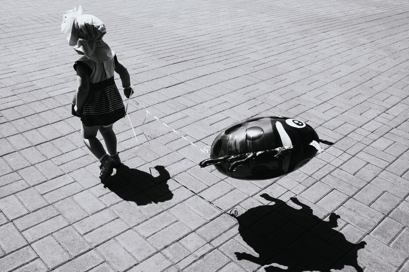 Однажды мне пришлось гулять в одном ничем не приметном дворе одного маленького городка. Это было почти захолустное местечко. И вот там, на детской площадке, сделанной, видимо, наспех, но неравнодушными людьми, на неровной и криво стоящей горке стояла эта одинокая девочка... Эта фотография надолго осталась в моей памяти.