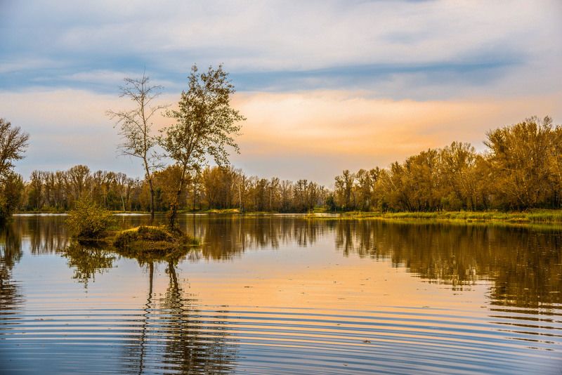 фотография сделана почти в конце уходящего лета. Вечера стали длиннее и более красочные , особенно на реках и озёрах, столько красок и отражений в воде.Вечером выехал на водоём , посидел , поснимал и полюбовался как играет закат.