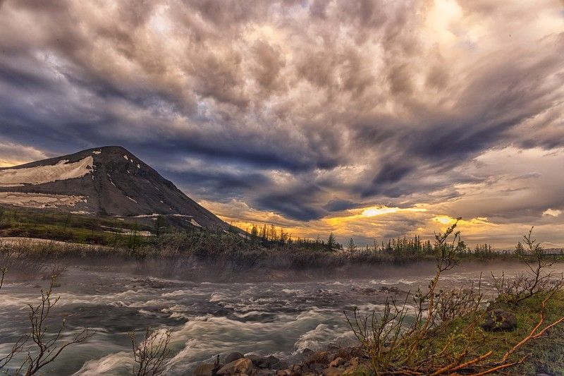 Норильск - самый грязный город России, где за год в воздух попадает около 2000 тысяч тонн вредных веществ. На фото трубы крупнейшего металлургического коплекса в 29 киллометрах от места съемки.
