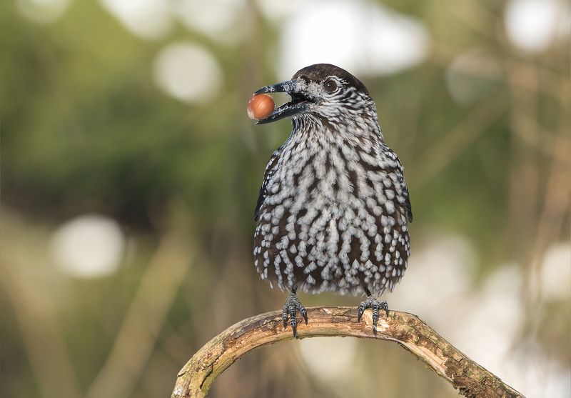 Кедровка или ореховка. Питается в основном семенами кедра, лещины, дуба. Зимой в подмосковных лесах наступает голодная пора, поэтому многие птицы, живущие здесь, вынуждены искать убежище в более южных районах, где есть достаточное количество корма. Кедровкам зима не страшна, поскольку они летом делают запасы на зиму, пряча семена где-нибудь в лесной подстилке, в трещинах деревьев и в других укромных местах. Самое поразительное, что все свои кладовые птица помнит и находит затем в течение зимы, даже под толстым слоем снега.