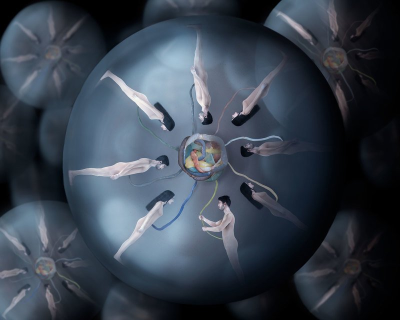 The eye of the audience is drawn to the center. Because of the eyes of the subject and the centrality of the subject's position, I mean the idea of bringing about the unity between the various planets of the earth, which uses the colors for black and white, which is a sign of racism. I used to paint the face in the shape of the continents and the type of gesture and that the two hands from the top and bottom of the face, which is the same globe. You ask for my photo of solidarity and union, and I used the attention of the subject to focus on the subject that his eyes cause to focus on the center and then turn around.