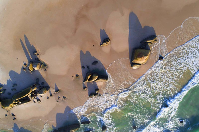 Через сайт Google maps я нашел на территории Вьетнама на берегу Южно-Китайского моря в районе Ке Га выходы гранитных скал. Я решил, что для аэросъёмки эти скалы будут интересны. Среди этих скал на восходе я решил запустить коптер. И, неожиданно, т.к. с земли этого не видно, тени образовали этот рисунок.