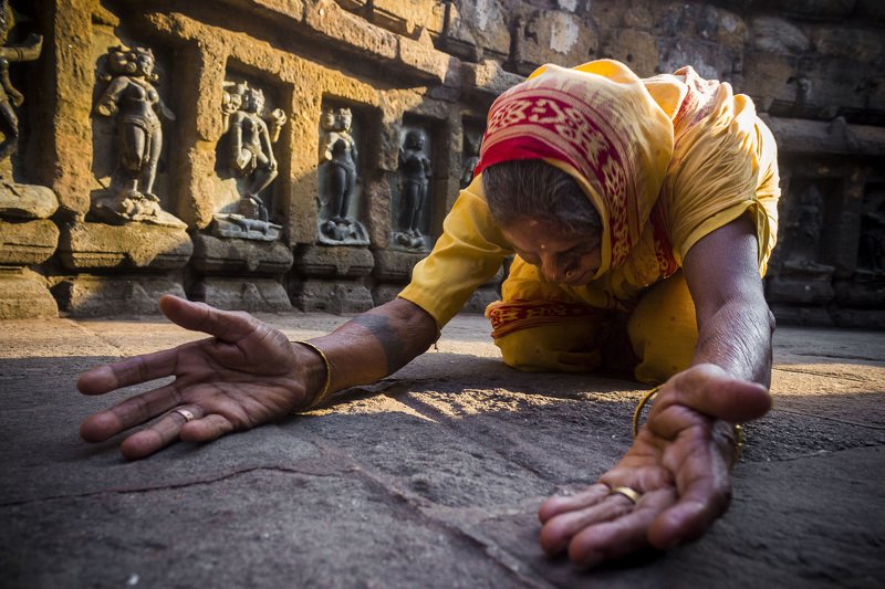 I have heard about a remote village named ‘Sonapalashi’ in Burdwan District of West Bengal where all these rituals can be experienced and travelled there with 2 of my friends on 11th April, 2017. The village was ready for the final show. Colours were being applied to the hermits’ bodies. It was the same scene in every village houses. After taking some snaps I came out of the house to refresh myself and saw two hermits were sitting beside the door and gossiping. They were done and waiting for fellow hermits to come and join them. I was busy chatting with them and suddenly saw another hermit who was inside the house was resting on the chair. I realized he created a beautiful coloured triangle with the outside two and took some snaps. It is one of them.