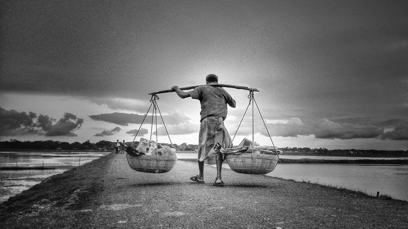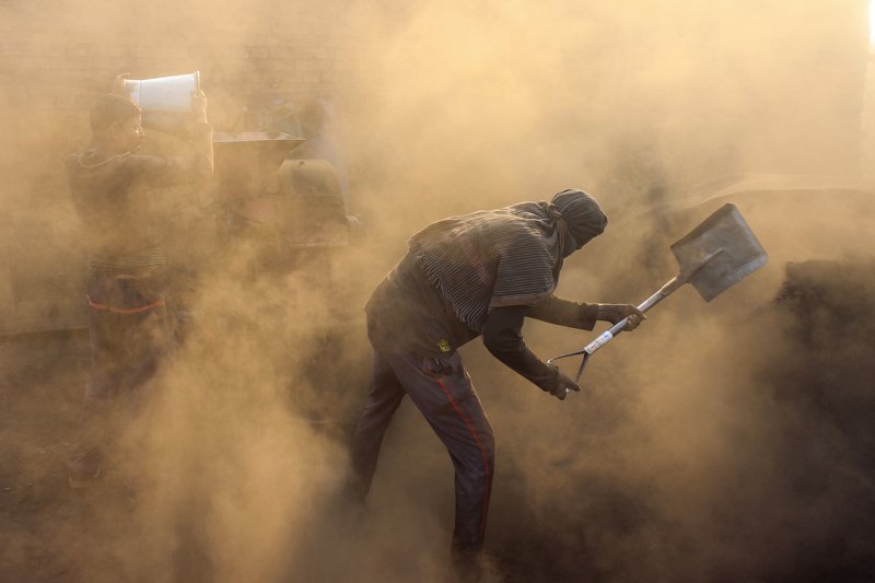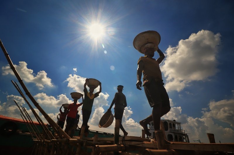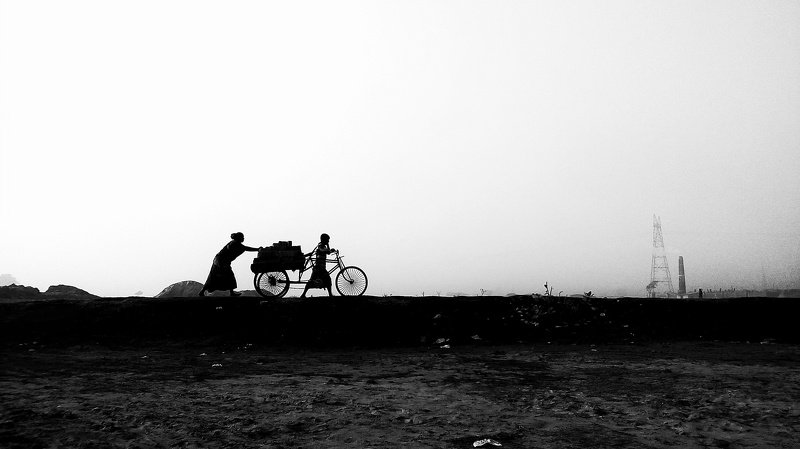 In Bangladesh brick field work both men & women mostly husband & wife. They work hard full day, this photo was taken from a brick field like that in a early morning.