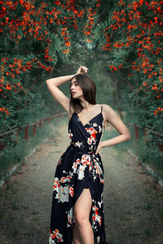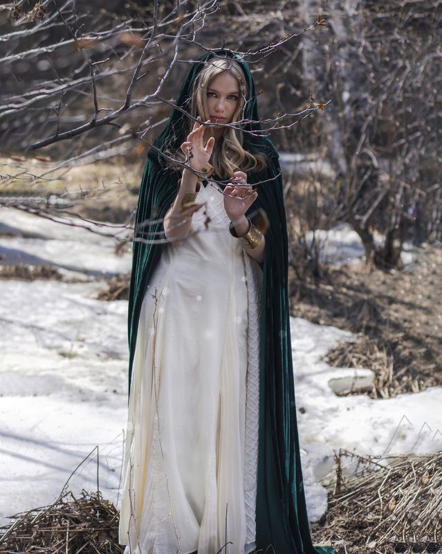 В основу съёмки лег сказочный персонаж-лесная нимфа. Красивая хрупкая девушка со светлыми волосами и зелеными колдовскими глазами. Бледная кожа перекликается с не проснувшимся и не набравшим ярких красок таинственным лесом. Она бродит по окутанным туманом таежным дебрям , осматривая свои владения, она хранитель леса и его принцесса. Проходя между березками, исполинскими деревьями и замысловатыми мрачными кустами она попадает в колдовскую и магическую пелену. В этом лесу она хозяйка- она МАЛАХИТОВАЯ ПРИНЦЕССА…