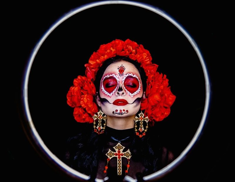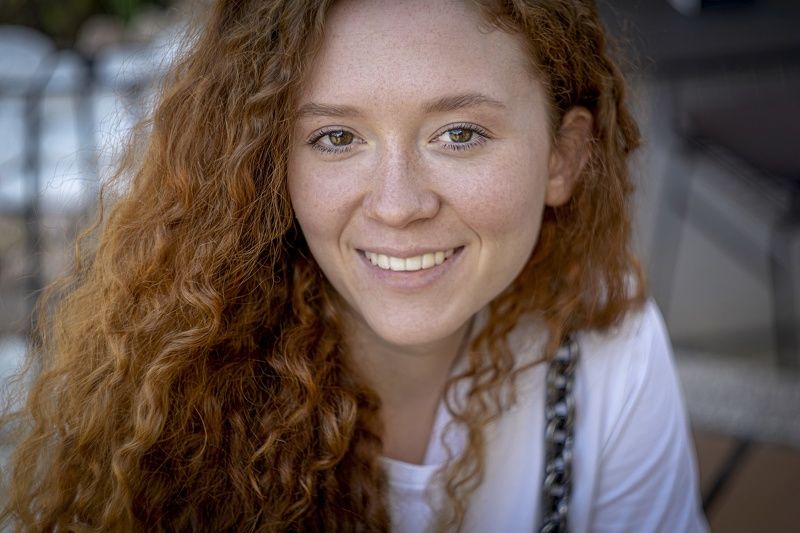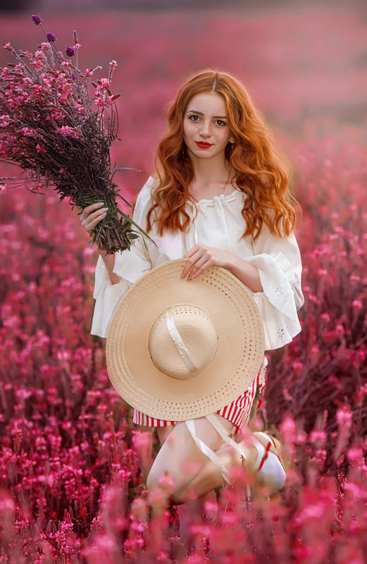 But I decided to implement it in 2021. I was inspired by the type of model. I decided to emphasize the bright red hair color with oranges, and shade it with complimentary green apples.