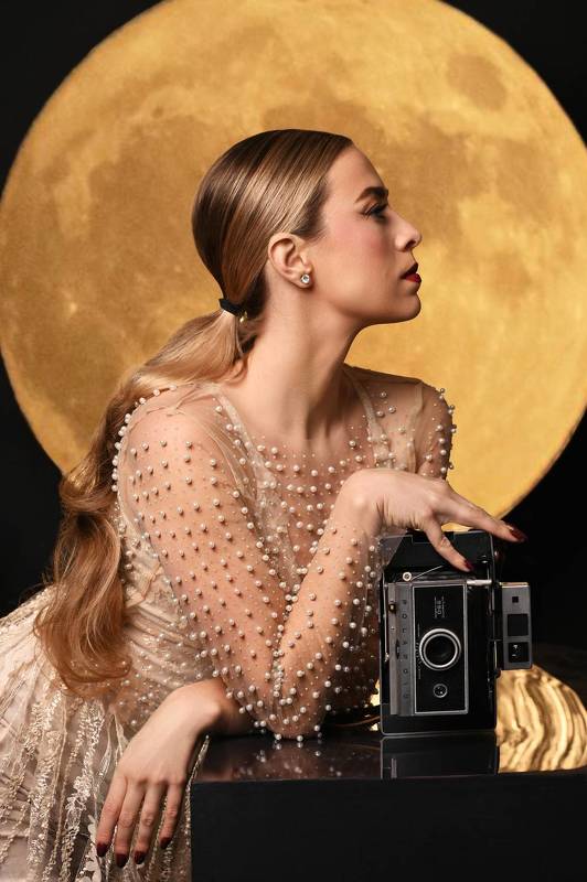 Все пазлы сложились: вместо духов в руках у меня оказалась ретро-палароид, тем самым я с помощью деталей показала, чем я занимаюсь, и сделала эту съемку еще чуть более личной.