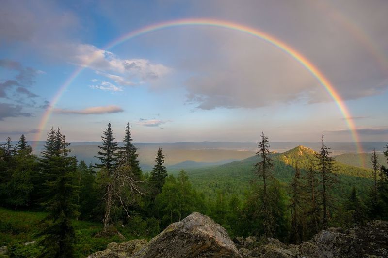 Горный массив Чёртовы ворота образуют горы Западный Ачешбок и Восточный Ачешбок. После сильного ливня, появилась радуга, вонзившаяся одним концом прямиком в Чёртовы ворота
