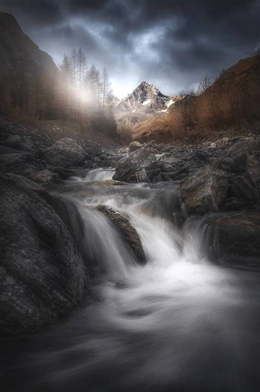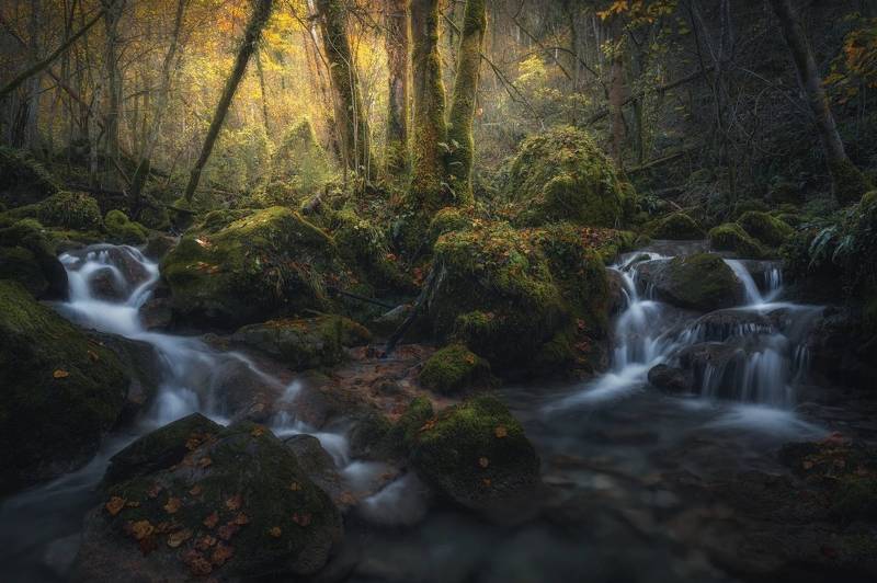 This stream in the San Leonardo forest, in my region, is a place that I know very well and I go there very often. These two small waterfalls with this islet with trees in the middle are the point that I consider most beautiful. I studied various compositions, I was there in all seasons at all hours of the day to understand the direction of the light. In the end I believe that the one I present is the best one. Also considering the right amount of water because with the drought these days, unfortunately, most of the time it is dry.