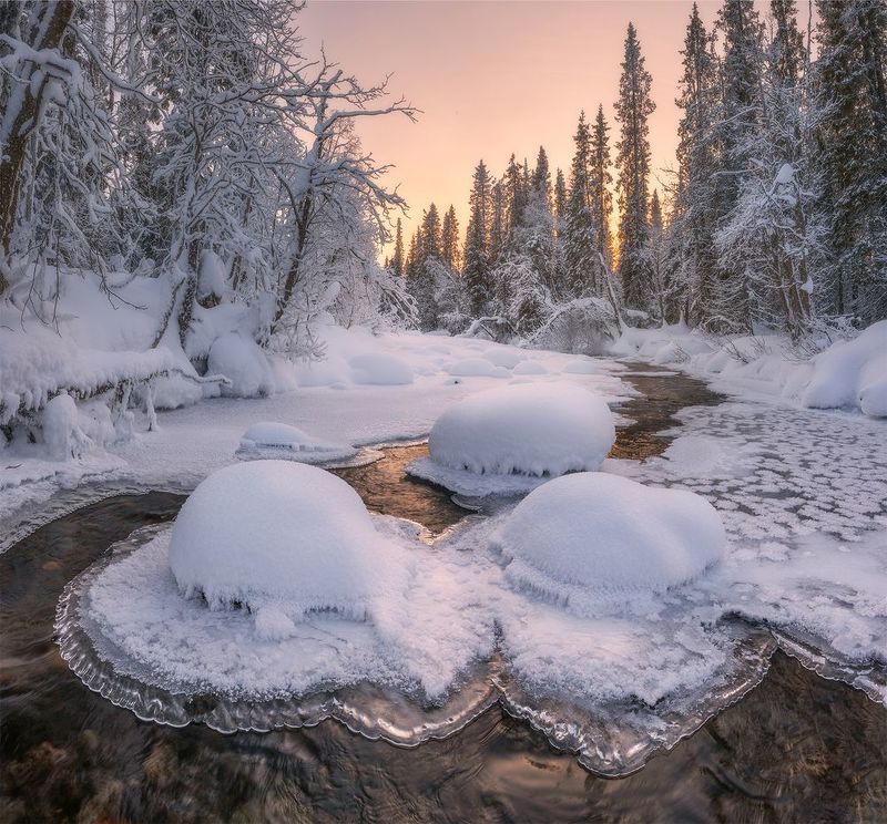 В погоне за солнцем я бежал что есть сил, на сколько это возможно, когда вязнешь в снегу по пояс. С каждым шагом уходя все дальше от места ночевки, начинаешь понимать что возвращаться придется уже в темноте, но это того стоило.