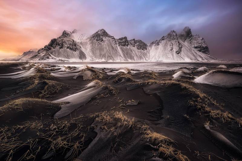 After taking typical photos at sunrise and seeing that the light was still good I tried the challenge of taking Stokksnes framed, the truth was not easy, I had to make many attempts and several series of which at home I only liked one.