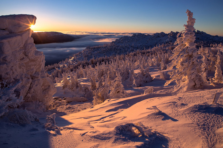 Национальный парк «Таганай» на Южном Урале – одно из лучших мест в России для съемки сказочных зимних пейзажей. Находиться среди потрясающих горно-таежных ландшафтов Таганая в суровый зимний период можно в относительно комфортных условиях, проживая в отапливаемых гостевых домах национального парка, которые располагаются совсем недалеко от лучших локаций для фотосъемки.